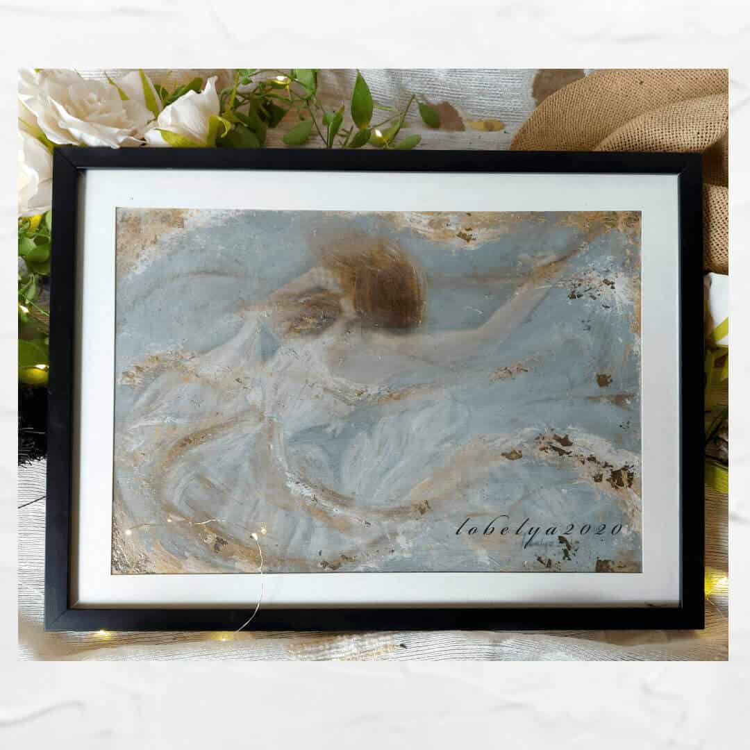 Acrylic paint with gold shimmer accent
