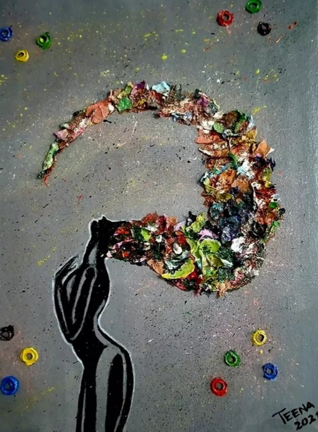 Teena Maaliw-Octaviano is a native of Lucban, Quezon. After finishing her degree in B.S. In Psychology in CEU (Manila), she migrated to Italy. Setting aside art, she kept busy (aside from work) with travelling, writing and photography. She then returned home after more than two decades, and put up Bimbi Piccoli Learning Center where she teaches art for toddlers, kids, teens and kids with special needs. Then she got back to her first love: painting. She joined Lucban Artists Guild last 2019. Her artworks is characterized by a blast of colors. Among her art exhibit participation includes: “Kahawig/Kahalintulad”, December, 2019 at Project Space Pilipinas (Lucban, Quezon), “Childhood Memories”, solo show, January, 2020 at Museo de Lucban, “Ani ng Sining, Galing ng Lucbanin”, Feb. 2020 at Marcos Tigla Park. and “Papelismo Boceto” at Ortigas Art Festival, March, 2020. She had her 2nd solo show last January, 2021 entitled, “Dahon: Kulay, Titik, Buhay” at Museo de Lucban;  LAG group show at Marcos Tigla Park, “Quezon: Alay Sigla sa Sining at Kultura” (Feb. 2021), “Likhang Maririkit” (May, 2021); and an exhibit of Art Show Philippines, “Pistang Pilipino” last May, 2021.