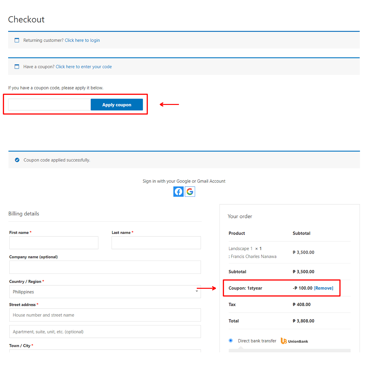 5. A fixed discount of Php100 will be deducted from the total cart amount.